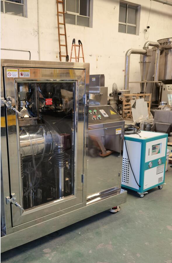 無(wú)環(huán)境污染。 細(xì)胞破壁機(jī)系列設(shè)備具有以下特征 1、安全性強(qiáng):與物料接觸的部位均為拋光不銹鋼,其材質(zhì)為國(guó)際醫(yī)藥食品機(jī)械通用材質(zhì)(也可根據(jù)用戶要求改為其它金屬材質(zhì))。 2、潔凈衛(wèi)生:內(nèi)外面平滑、一機(jī)多用、減少污染、減輕洗凈作業(yè)負(fù)擔(dān);粉碎過(guò)程全密閉無(wú)粉塵溢出,充分改善作業(yè)環(huán)境,有效成份不損失。 3、采用復(fù)合(透明)隔聲罩,具有降噪功能。 4、易拆卸(組裝)、易清洗、易換料。可用水、壓縮空氣、酒精、蒸汽等清洗、消毒。 5、操作簡(jiǎn)便:容量適配、確保物料完全排出,操作和換料簡(jiǎn)便。 6、維護(hù)方便:結(jié)構(gòu)緊湊、占地面積小,維修養(yǎng)護(hù)方便。 7、改善環(huán)境:全密閉作業(yè)無(wú)粉塵溢出、有效成份不損失、無(wú)藥渣產(chǎn)生,可改善工作環(huán)境。 8、提高效率:高速撞擊力和剪切力的雙向作用,極大地縮短了粉碎時(shí)間,提高粉碎效率。 9、廣譜適應(yīng):對(duì)于任何纖維狀、高韌性、高硬度或有一定含水率的物料均可適應(yīng)。對(duì)花粉及其它孢子植物等要求打破細(xì)胞壁的物料,其破壁率高于95%。同時(shí)適應(yīng)干式和濕式粉碎。濕式粉碎時(shí)可加入水、酒精或其它液體。 10、溫度可控:通過(guò)配置可進(jìn)行高溫、常溫、低溫或超低溫的微粉碎,可以保持物料的原有理化性質(zhì)和活性成份。給磨筒外壁的夾套通入冷水。通過(guò)調(diào)節(jié)冷卻水的溫度和流量可控制粉碎溫度。低溫粉碎,冷凍系統(tǒng)最低溫度可達(dá)零下35℃(高檔低溫配置)。[冷凍系統(tǒng)另外購(gòu)買(mǎi),標(biāo)配為水冷降溫。]